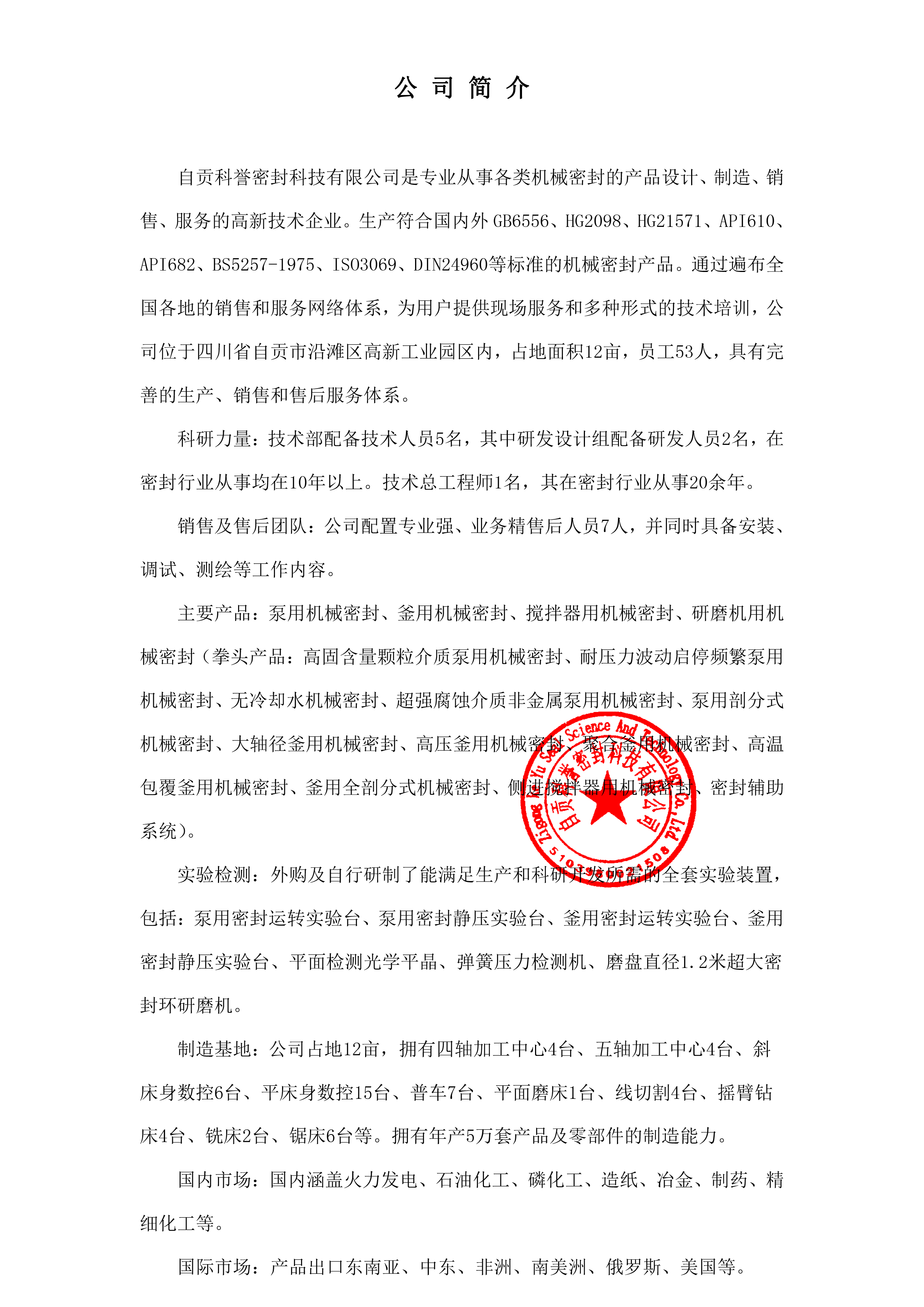 自贡科誉密封科技有限公司最新生产力简介