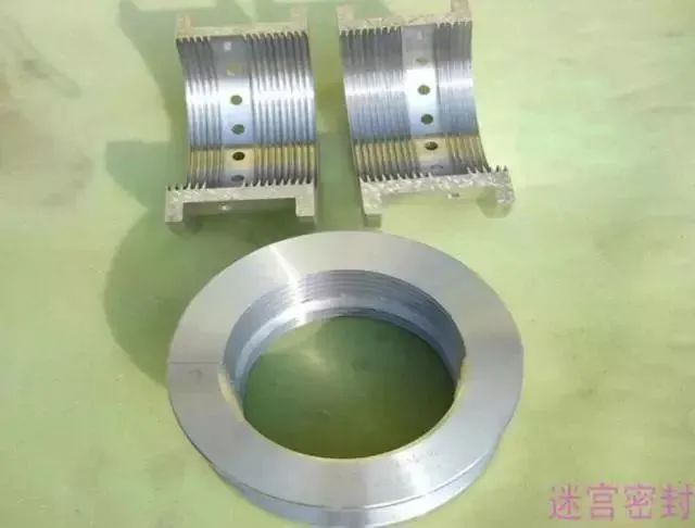 曲折式迷宫密封也分整体和镶片两种结构,这种迷宫密封的结构特点,是密封齿的伸出高度不一样。
