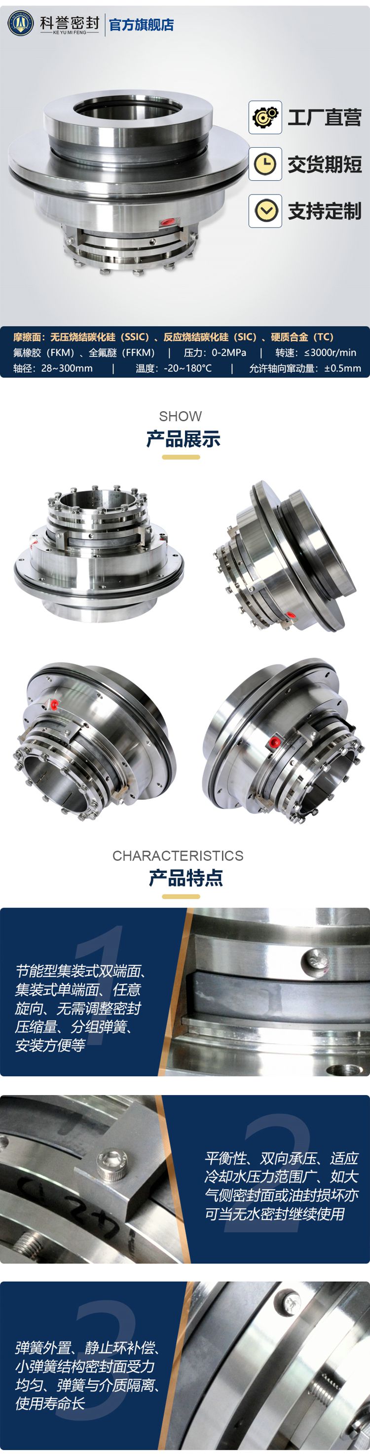 | 辅助密封 | 氟橡胶(FKM)、全氟醚(FFKM)、乙丙(EPDM)、阿氟拉斯(AFLAS) |